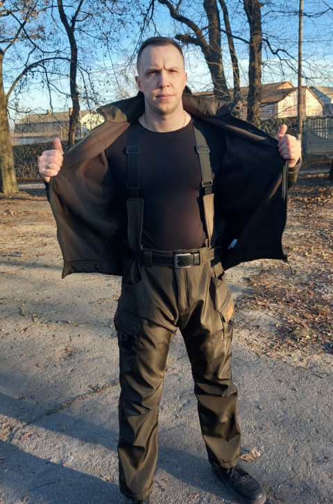 Tento odolný softshellový komplet je vyrobený z materiálu Softshell DEWSPO (Duspo) a zateplený flísovým materiálom. Materiál Duspo sa vyznačuje vysokou hustotou, dlhou životnosťou a odolnosťou voči poškodeniu. Zároveň nepremokne, neprepustí vietor a nestráca farbu ani po mnohých praniach.