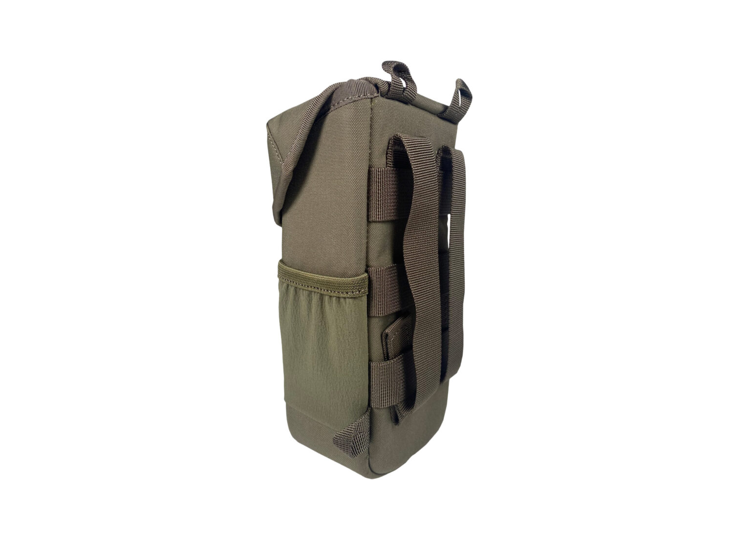- Na batohu – Prepravné puzdro možno pomocou MOLLE popruhov pripevniť k MOLLE-kompatibilným batohom pre väčšiu nosnú kapacitu a jednoduchý prístup.