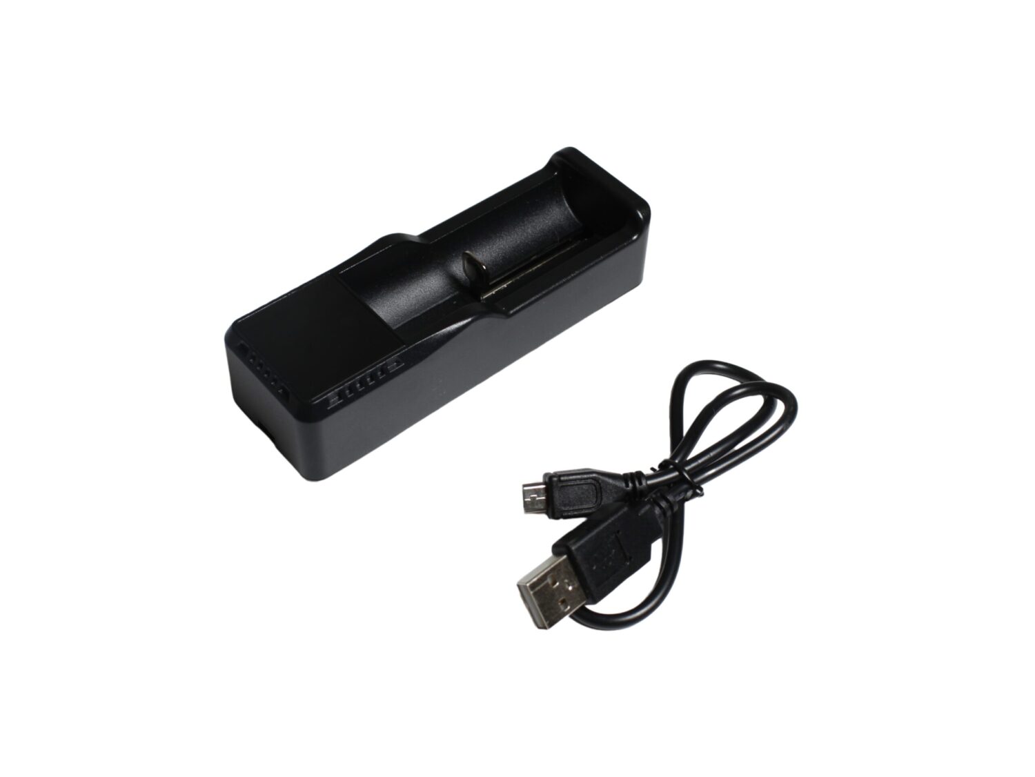 Lithium-iontová nabíjačka s jedným nabíjacím slotom. Vďaka pohyblivému zadnému kontaktu umožňuje nabíjanie batérií v širokom rozsahu dĺžok.