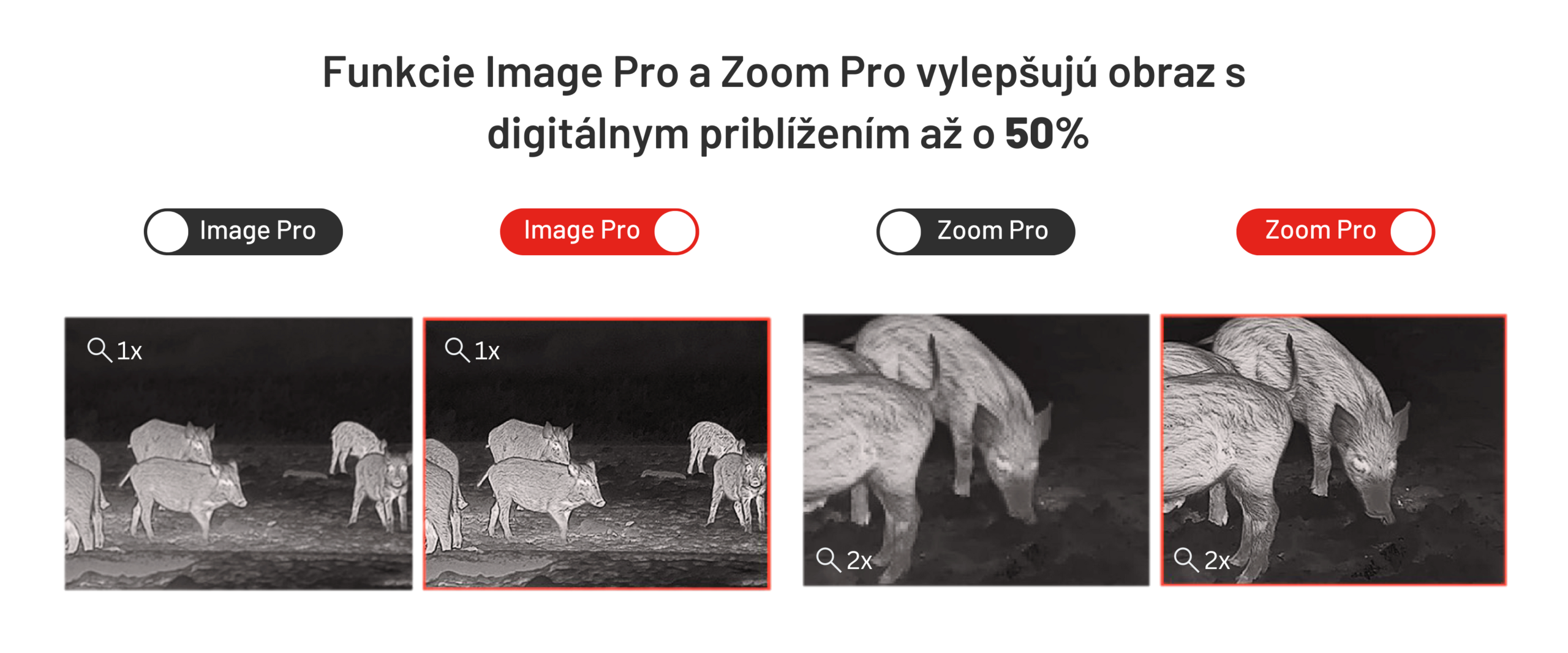 Pre ešte kvalitnejší obraz prichádzajú funkcie Image Pro a Zoom Pro, ktoré až o 50% vylepšujú obraz pri digitálnom priblížení. Pokročilé technológie spracovania obrazu prinášajú čistejší a detailnejší obraz vykreslený na displeji OLED s rozlíšením 1024 × 768 px.