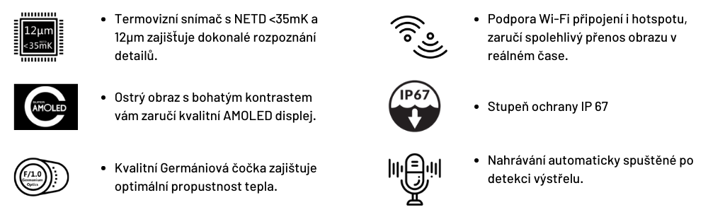 ThermTec prichádza s novým termovíznym zameriavačom v podobe puškohľadu ARES 660, ktorý je prvým termovíznym puškohľadom s variabilným optickým zväčšením! Má jadro s rozlíšením 640 × 512 pixelov a citlivosťou < 35 mk (pri 25 °C), displej AMOLED s rozlíšením 1024 × 768 pixelov a kvalitnú šošovku s ohniskovou vzdialenosťou 60 mm z germánia. Tieto parametre zabezpečujú krásne čistý obraz v drsných podmienkach prostredia, ako je tma, hmla, dym, prach, dážď, sneh a lesný porast. Tradičný tubusový dizajn s 60 mm šošovkou spĺňa potreby profesionálnych lovcov, ktorí si cenia tradície a hľadajú technologickú dokonalosť s extrémnym dosahom detekcie až 3000 metrov. Široká škála nastavení vám umožňuje plne prispôsobiť obraz tak, aby dokonale spĺňal vaše požiadavky. To všetko podporuje perfektný zásah cieľa pri love alebo ochrane majetku.