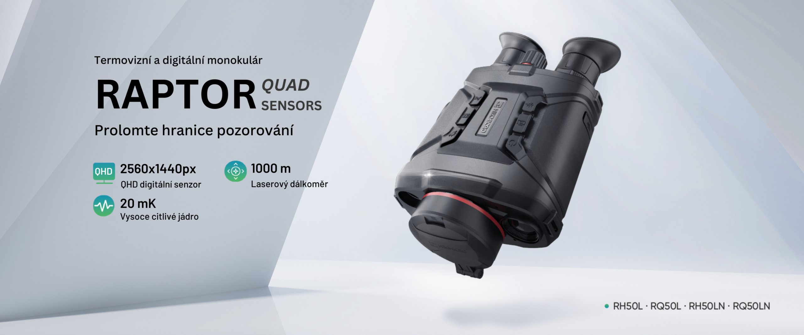 Inovatívny rad binokulárnych ďalekohľadov RAPTOR v kombinácii s termovíziou, digitálnym denným a nočným videním a laserovým diaľkomerom poskytuje bezprecedentné možnosti pozorovania v termovízii alebo v živých farbách, zblízka alebo do diaľky, vo dne aj v noci, aj v tých najhorších poveternostných podmienkach. Vďaka tomu všetkému môže RAPTOR prelomiť vaše hranice pozorovania.